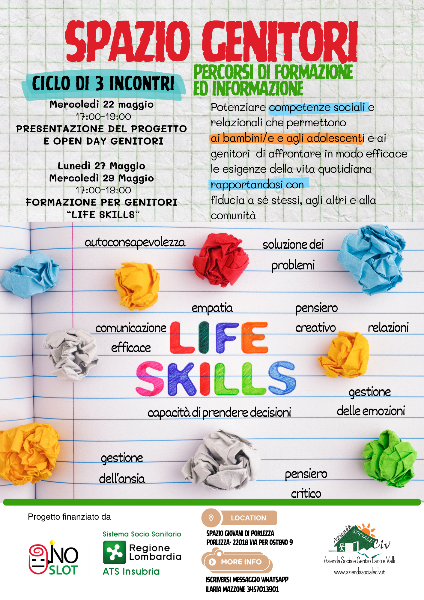 ORE 17:00-19:00 C/O SPAZIO GIOVANI di PORLEZZA VIA PER OSTENO, 9
